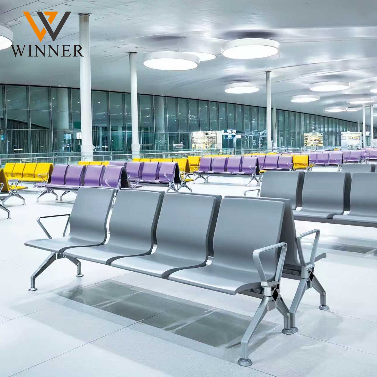 Modern 3 Seater Airport Waiting Chair PU Cushion Aluminum Legs Commercial Bench for Hospital Clinic Airport Terminal Train Station Lobby Reception Supplier